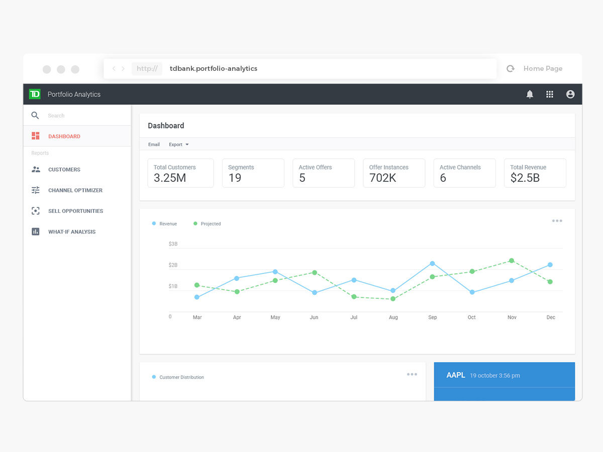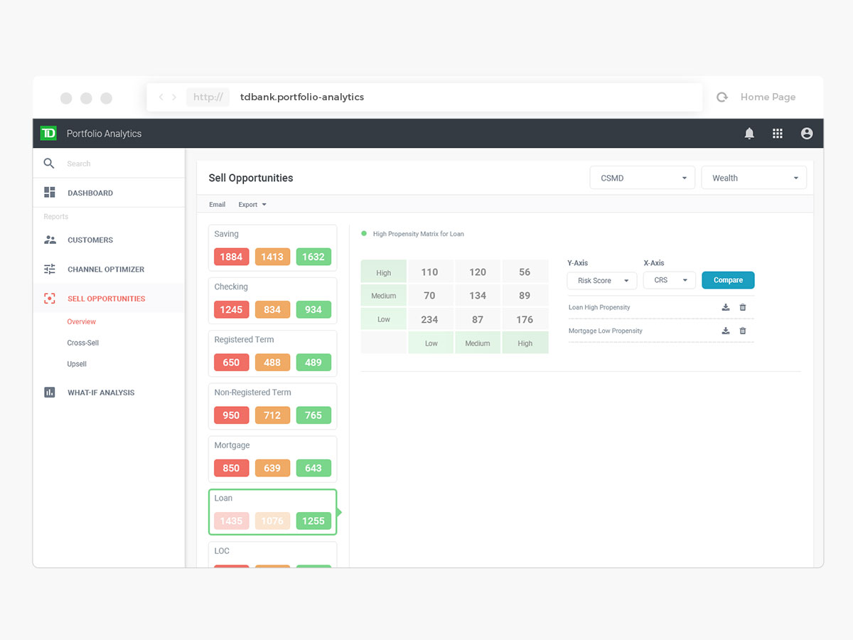 Our vision for Portfolio Analytics was to be the tool for Relationship Managers to use when dealing with customers. We did not want to offer an exhaustive list of irrelevant data, rather wanted to focus on the most critical indicators that are deeply personalized to the customers' needs.
